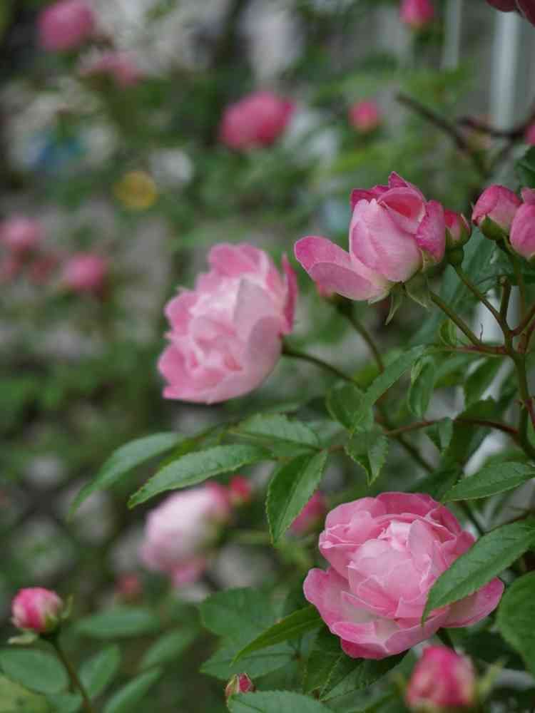 初めて国バラに行った時に可愛かった玉鬘、もっと白っぽかったのに、気温が低いせいか、ピンクです💞