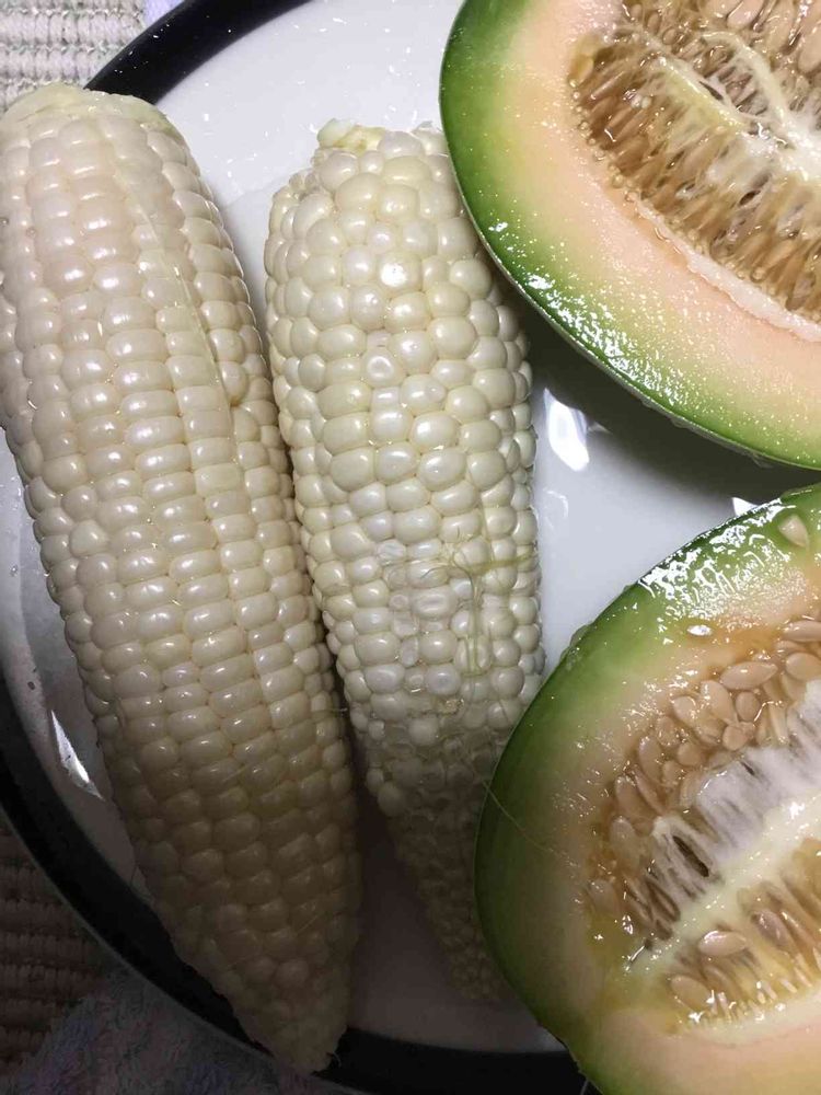 こんなにおいしそうな白いとうもろこしやプリンスメロンが家で収穫できるなんてすごいですね💖