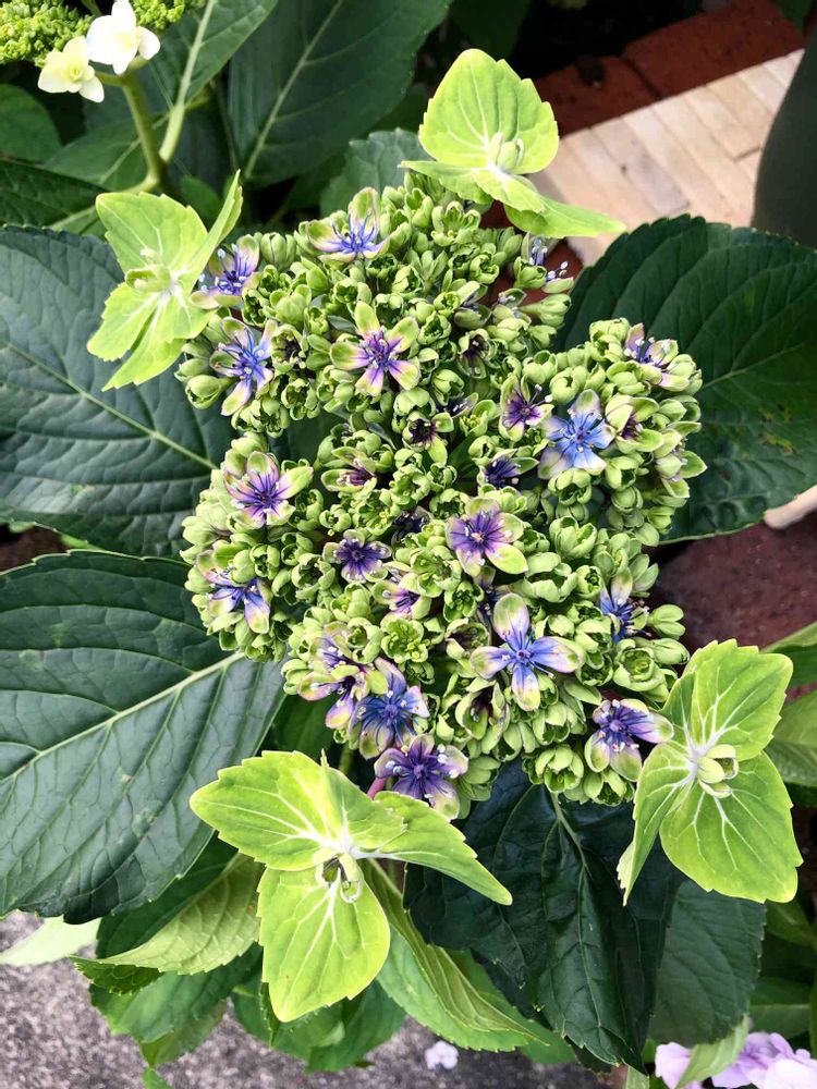 装飾花は変わりないけど中央の花が紫いろの花を咲かせています💙💜