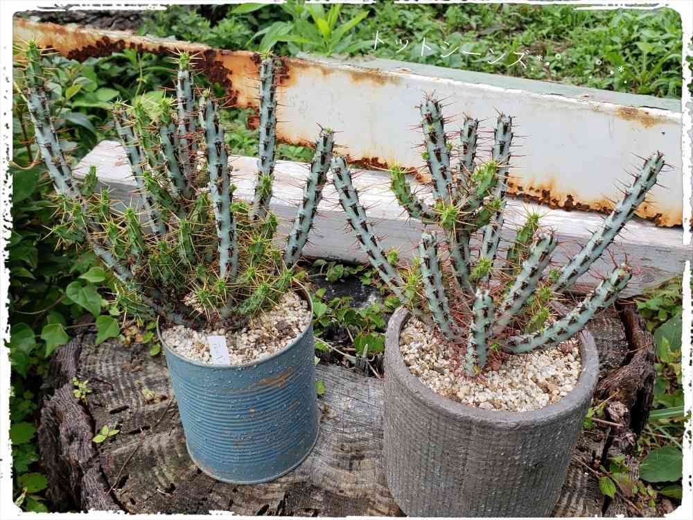 Picは ユーフォルビアの 〝 アエルギノーサ〟ブルーグリーンの肌がとても綺麗な枝物の群生系の植物です。