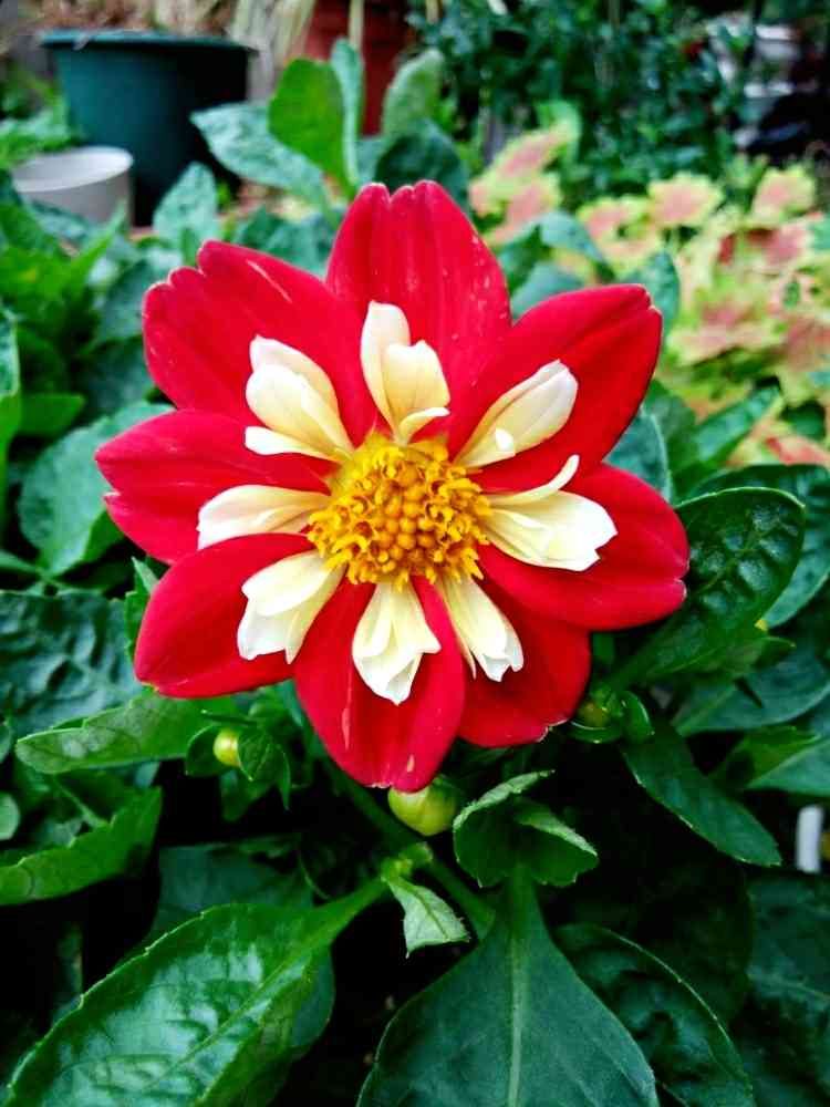 真っ赤な花びらの中に白が入って本当に可愛いくて素敵です🌼🌿私はダリアを育てたことがないですが可愛いので欲しくなりました🌼🌿今日も朝から雨です😅