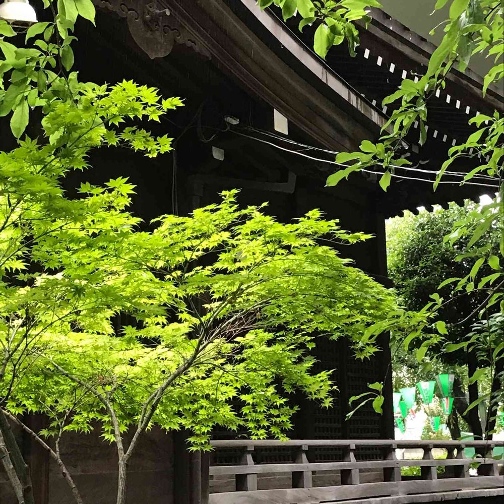 雨の中 紅葉の緑が明るい😊