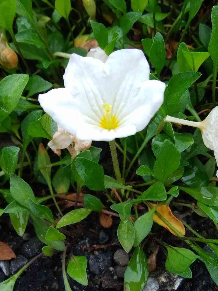 舗装路とコンクリートの隙間にひっそりと咲いてました。栄養状態が良くなくて小さくなったようです