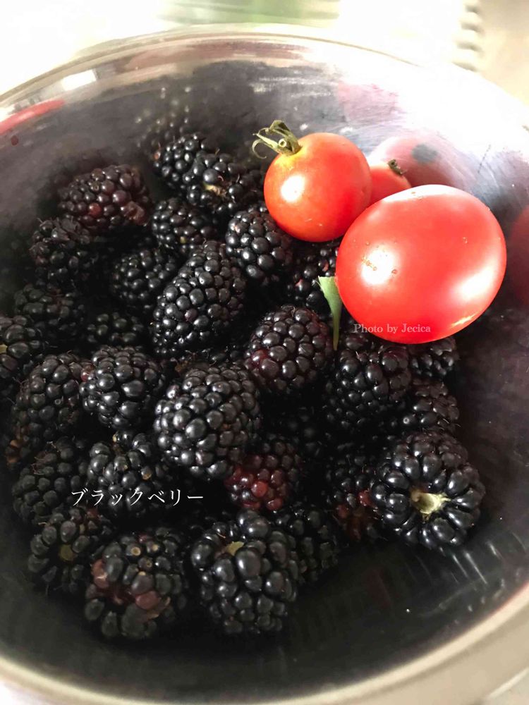 ブラックベリーの果実,プチトマト真っ赤,私の庭の花の投稿画像