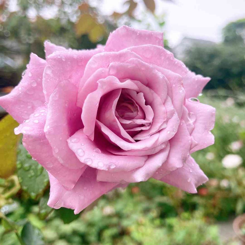 雨の中シャルル ド ゴールさんの2番花が綺麗に咲いてくれています(* ˘ ³˘)♡*︎💕︎