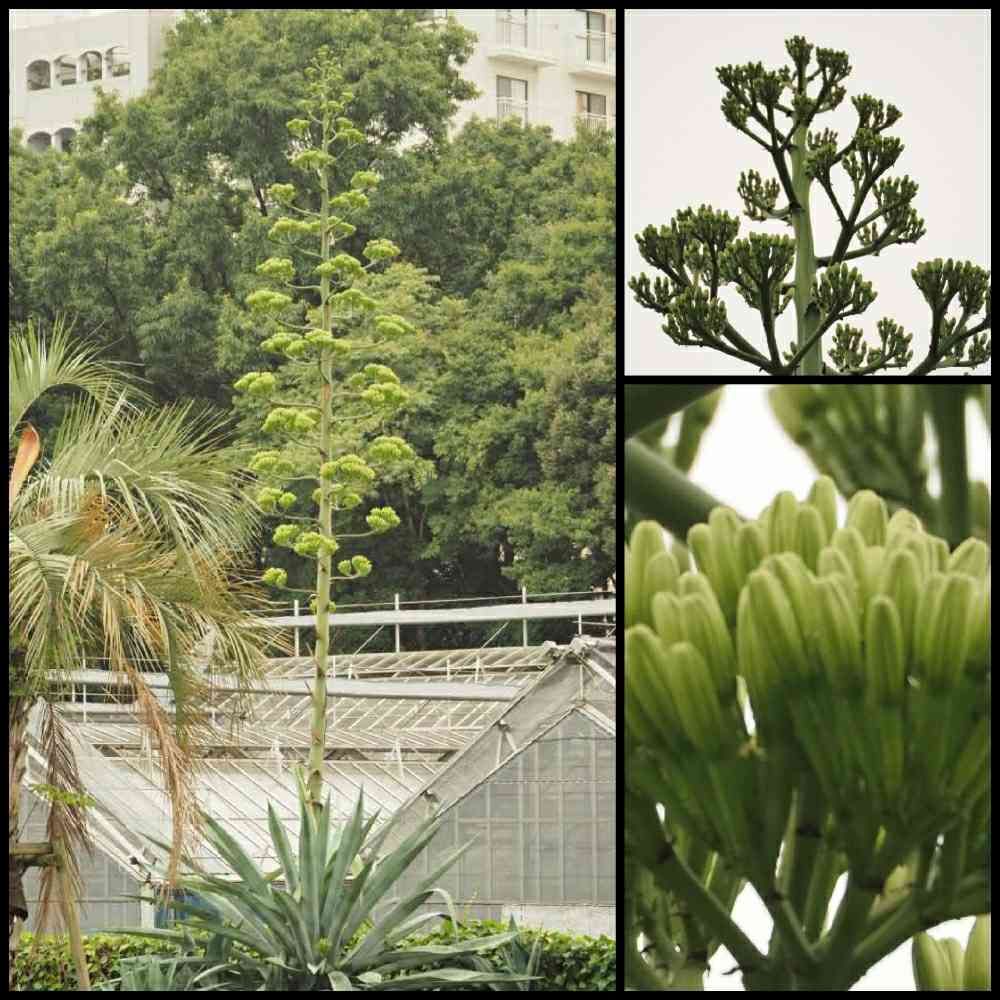 普段葉っぱしかないアオノリュウゼツランですが、30〜50年に一度花を咲かせます。花が終わるとその株は枯れるそうです。