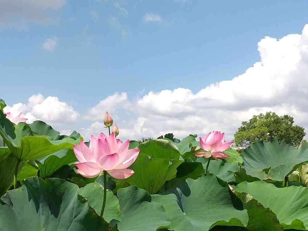 ハスの花畑と青空のコントラストがとってもキレイ😊