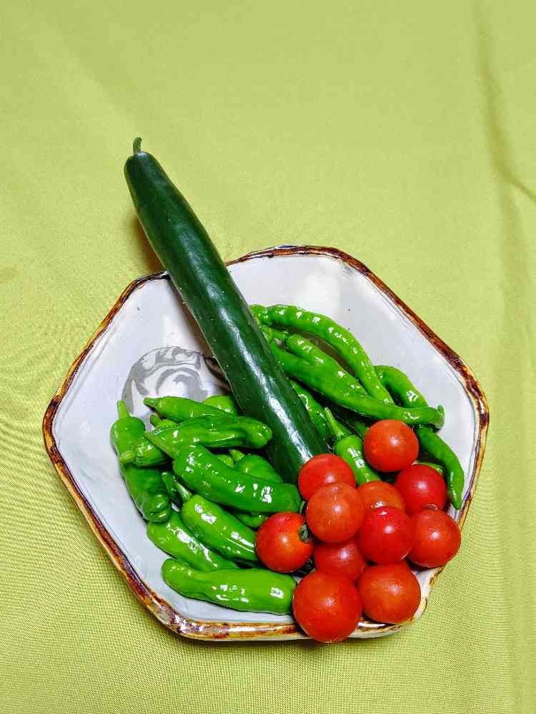 今までで、一番綺麗なきゅうり🥒と甘長トウガラシ、シシトウ、ミニトマト