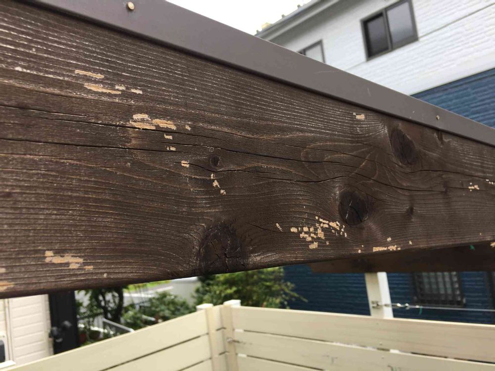 数日前に気がついたのですが庭の木製のパーゴラの側面に何かに削られたような痕が無数にあります。