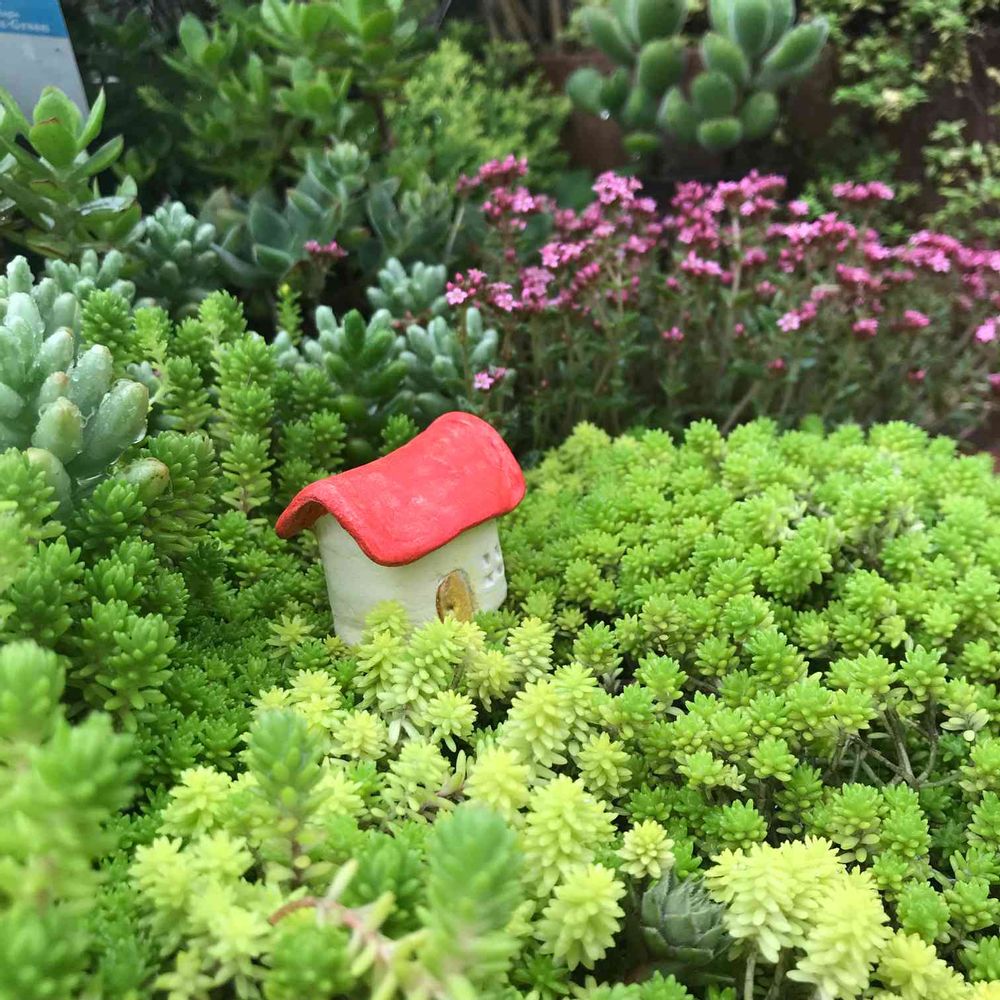 多肉さんが心配でタニパトした後セダムガーデンに粘土で作った家を置いてみた‼️