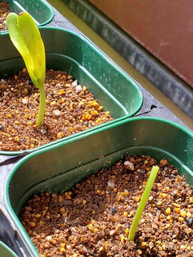 根が伸びて種を持ち上げた苗の、数多の試練に手出しは無用‼️