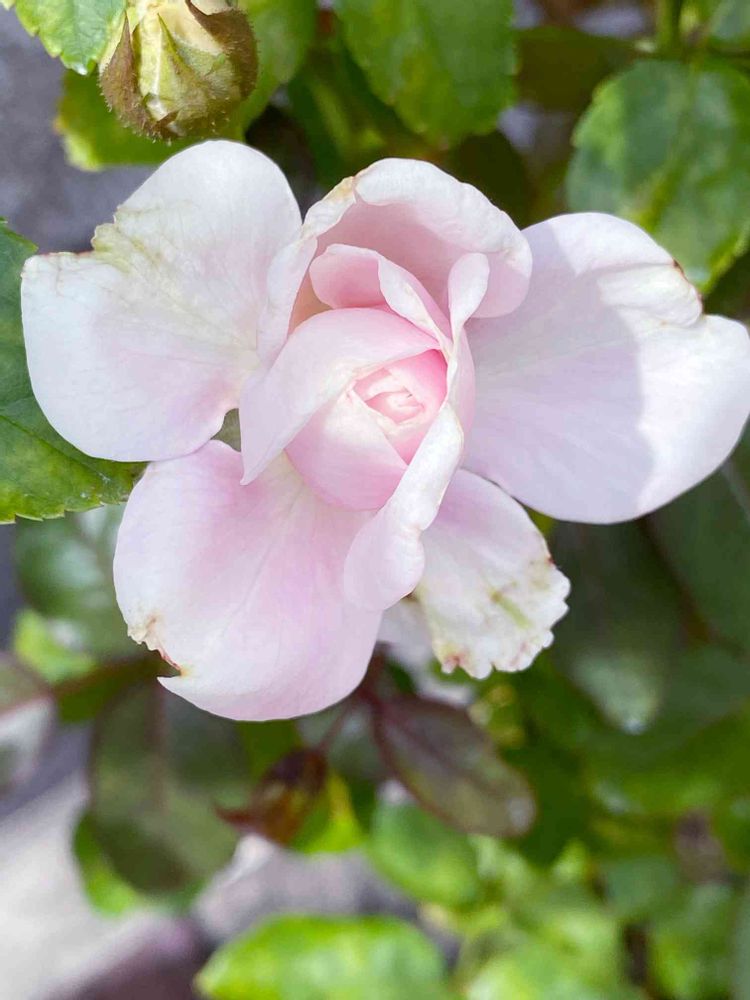 雨で花弁が少し傷んでますが、粉粧楼です🌹💫