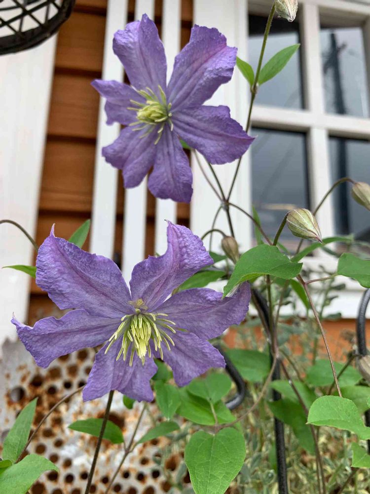 可愛いな〜💜チャールズさんが蕾をたくさんつけてお花も咲かせてくれてますね〜╰(*´︶`*)╯♡