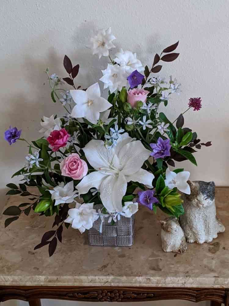 白いキキョウがきれいですね✨カサブランカもいいですね‼️