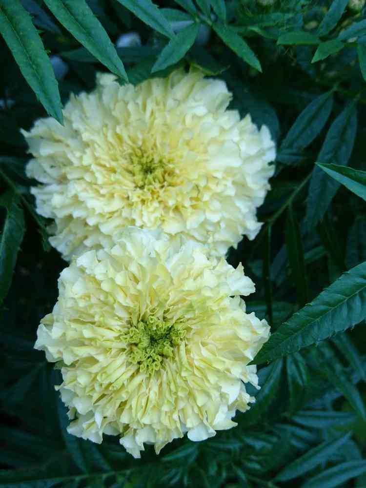 濃いオレンジ色や黄色の物が多くて、10年くらい前に名前の一部にムーンという名前がついていたマリーゴールドを育てたのですが、花色の濃いものよりは弱いのか育ちませんでした。