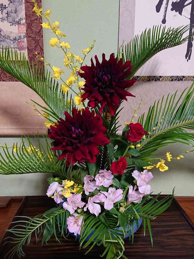 ダリアの色合いが大人っぽくて、素敵です💗