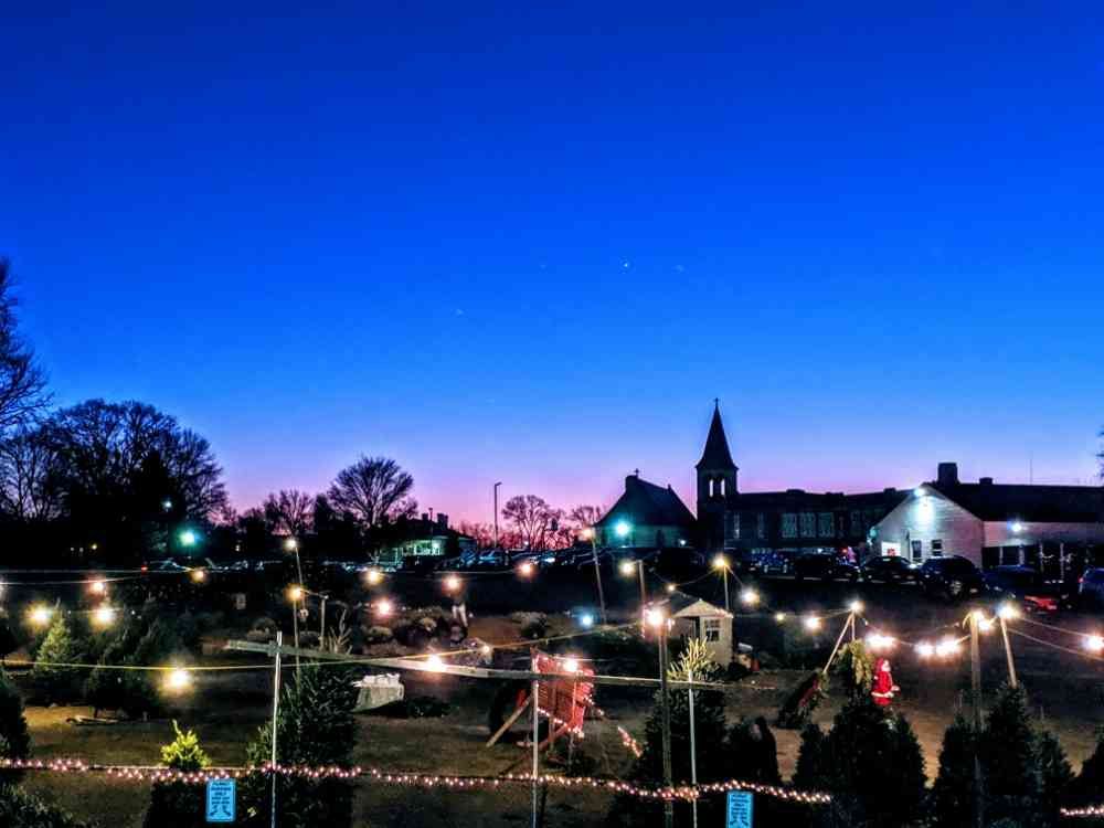 広場の特設もみの木販売所に夜が訪れました。(夜のお散歩道) 2019冬pic 🌲✨✨