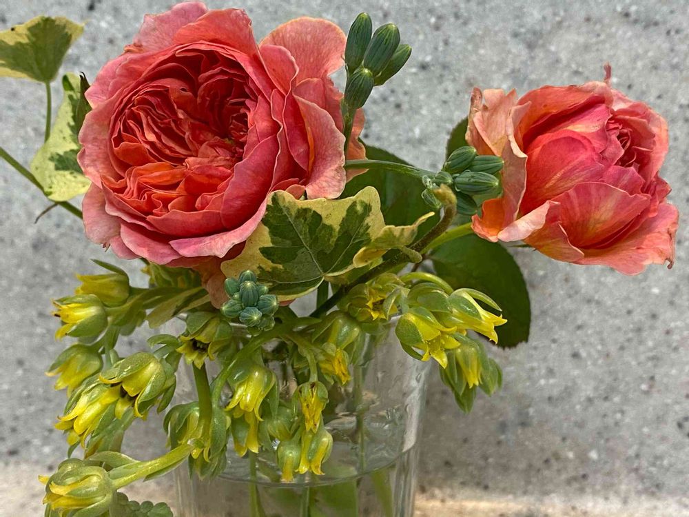 2番花 かおりかざりを、たくさん咲いた多肉のお花と一緒に飾りました