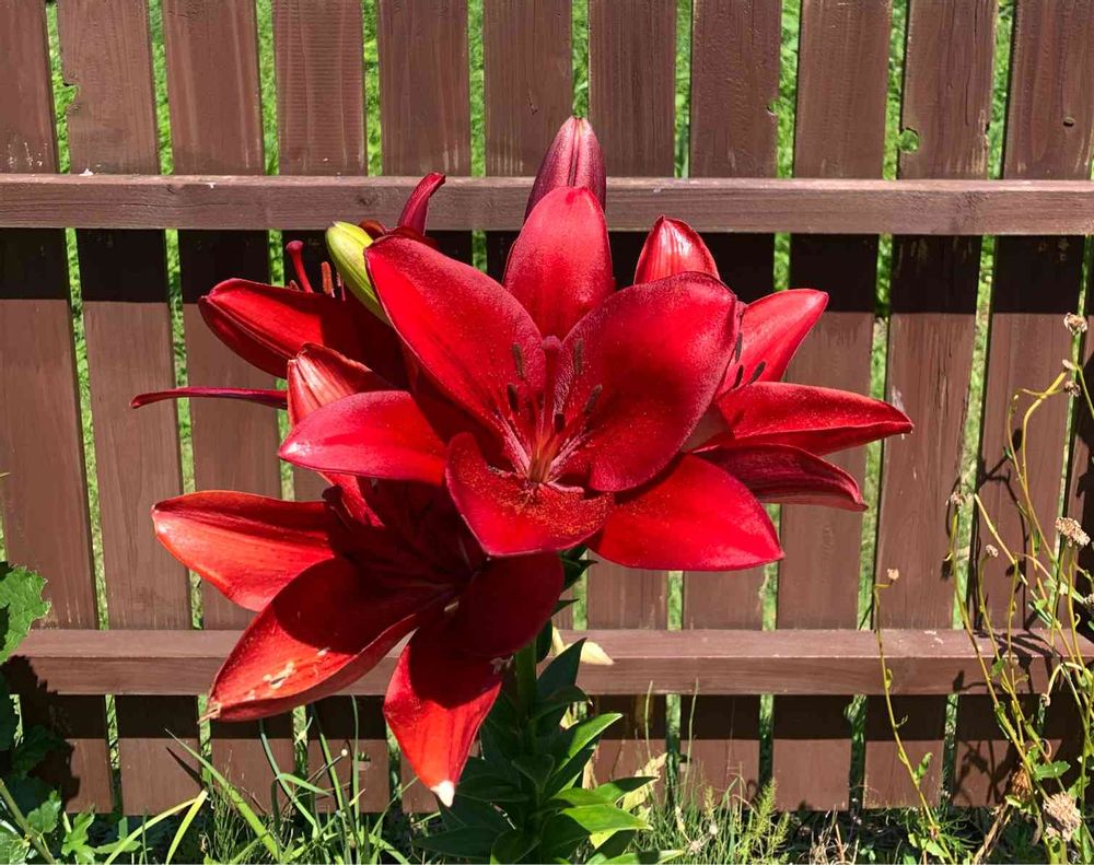 この赤いすかし百合は大小合わせると5本有ります…情熱の真っ赤な薔薇ではなく真っ赤な百合です…💕🌿❤️🌺❤️🌺🌿💕🥰✌️