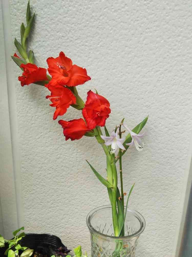 畑のグラジオラスとギボウシの花🌼ギボウシってこんなにステキな花だったんですね😃ゆりのようですね🤗