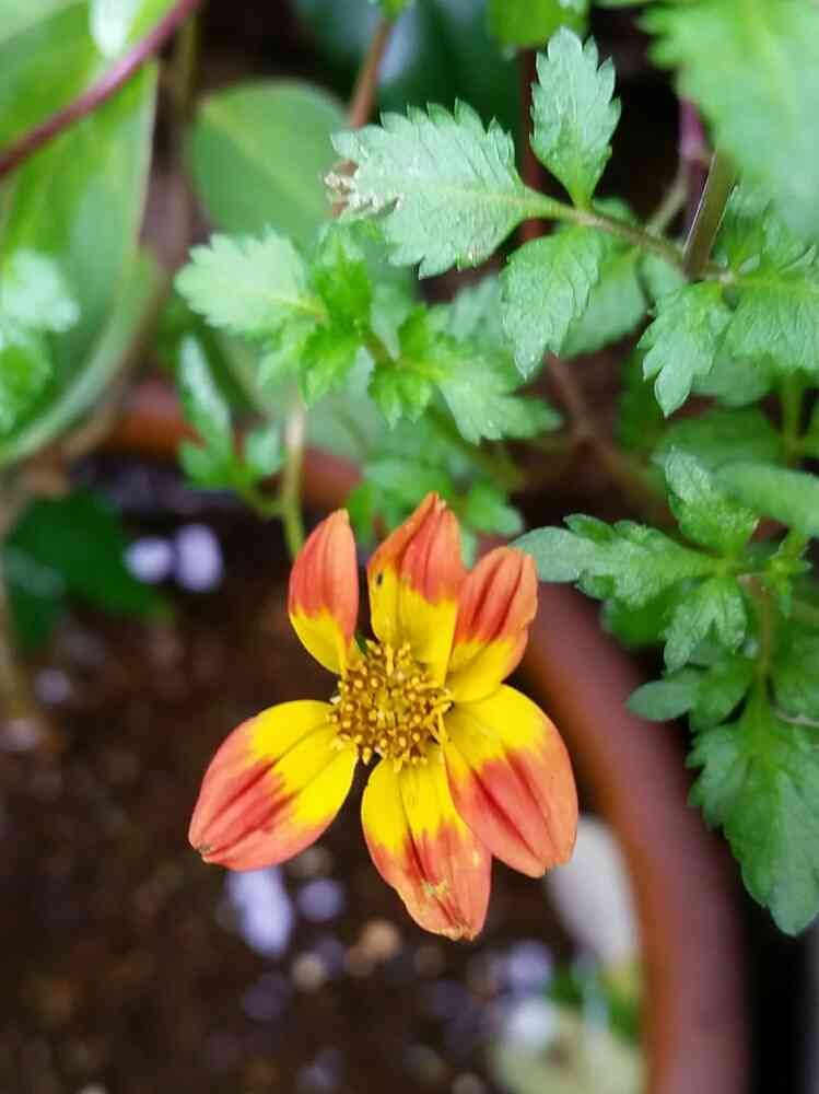 見切り品だったビデンス🌺🎵綺麗な色合いでした😁まだ一輪ですが、沢山咲いてくれるかな~😁😉👍🎶