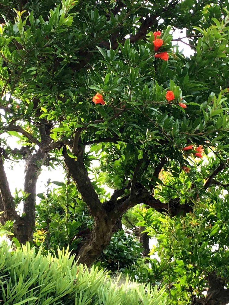 実家に子供の頃からあるザクロの木、大きくて花が小さいです😥😥