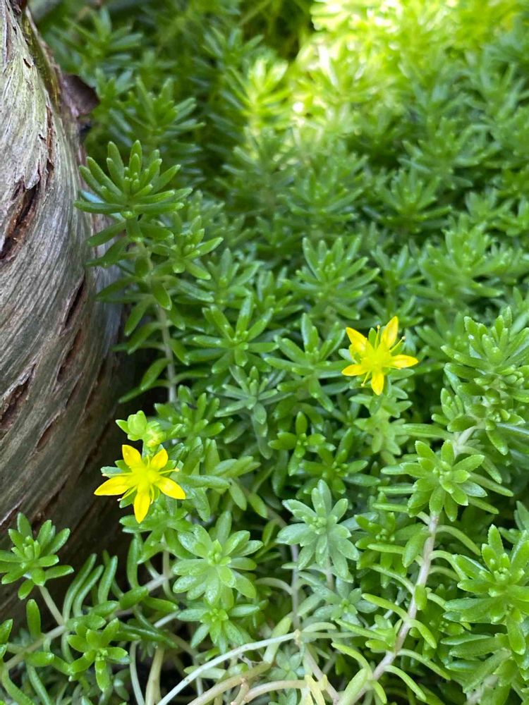 キノコが枯れて、モリムラマンネングサにお花が咲き出しました🌼