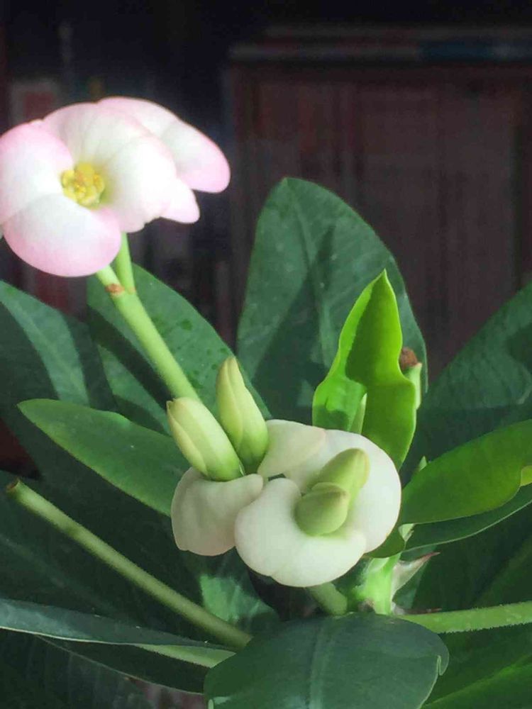 一つの花から2つ咲くみたい、1段めは2個そしてそれぞれ2個ずつ、不思議な咲き方😊