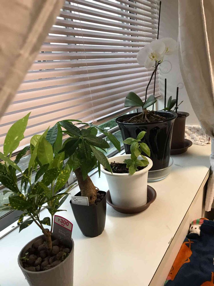 クロトン、パキラ、バジル、胡蝶蘭(8年目)