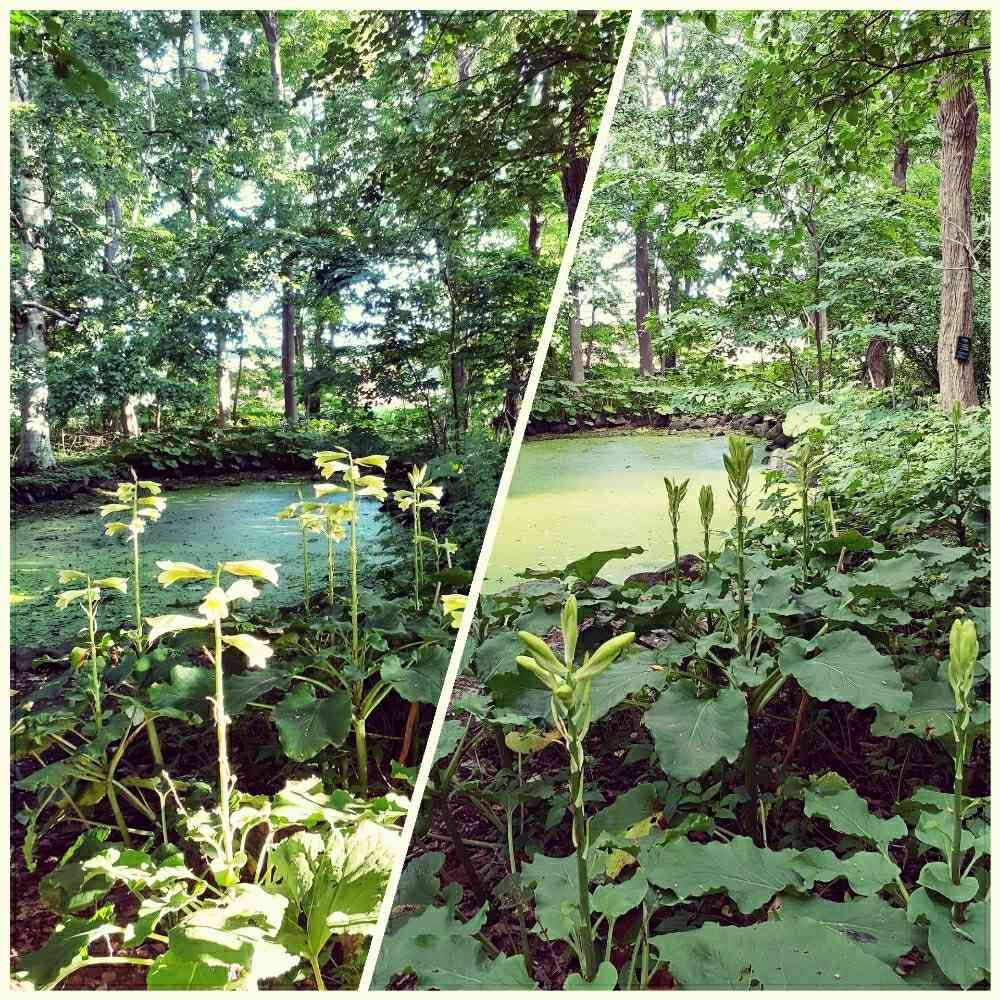 オオウバユリさん達が皆咲き始めています。成長著しいお花だと思っていましたが、発芽してから6~8年の間は花を付けず根に栄養を貯めて、最後に花を咲かせ一生を終えるのだそうです。