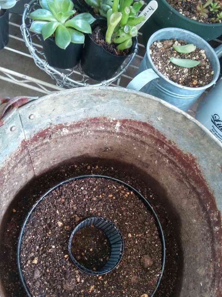 多肉用のリースを作りました☺️(錆びたバケツの中に入っているもの)