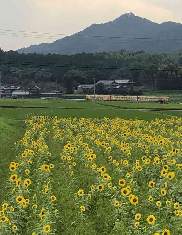 今日も向日葵畑を見に散歩してたら、アンパンマン列車が❣️