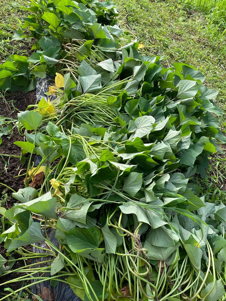 さん、私の周りからも芋づるの話を聞くのですが、たしかに祖母が生きていた頃は芋づるを炊いて食べていました。今は芋づるを食べることはしていません。ひたすら芋を育てています。お近くなら芋づるをとりにきていただけるのに。