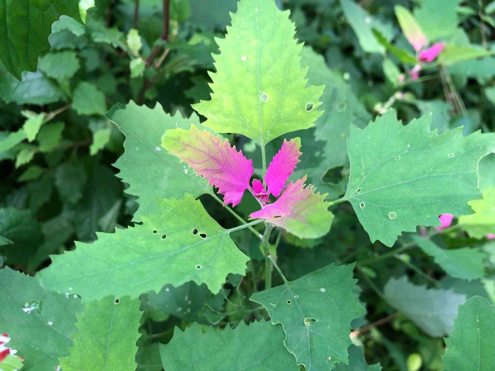 鮮やかなピンク色の葉に驚かされました❣️