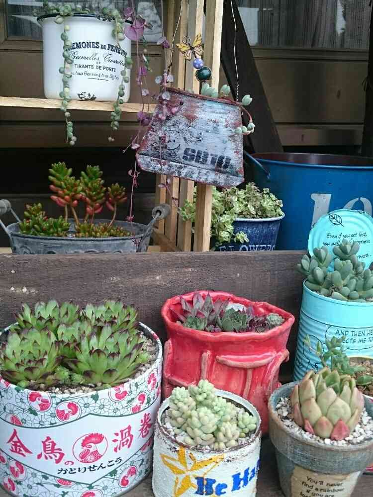 ここで仲良くして頂いてる皆さんから送って頂いた多肉やリメ缶やてびねり鉢(*^_^*)