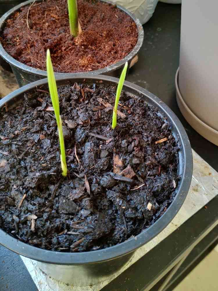 2月に袋播きをしていた"butia odorata"が発芽しました!!🙂🙂 約半年程かかりました…。
