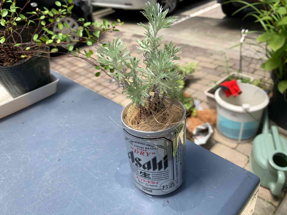 スーパードライミニ缶の朝霧草と小さな花のついたワイヤープランツ♡