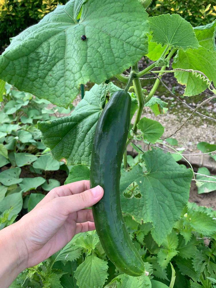 家も今年ベランダの🥒1本目、収穫しましたがこんなに大きくないです。