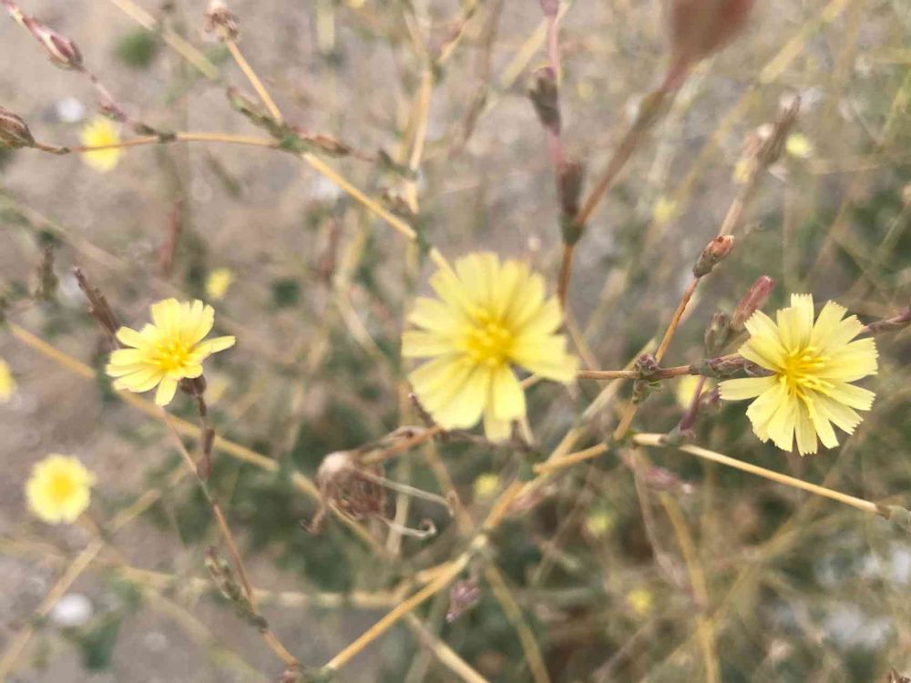 今朝ふと見ると、ノゲシと思っていた黄色い花がノゲシとは違うことに気がつきました。どうやら、トゲチシャというノゲシの仲間らしいです。乾燥に強いところは似ているようです。