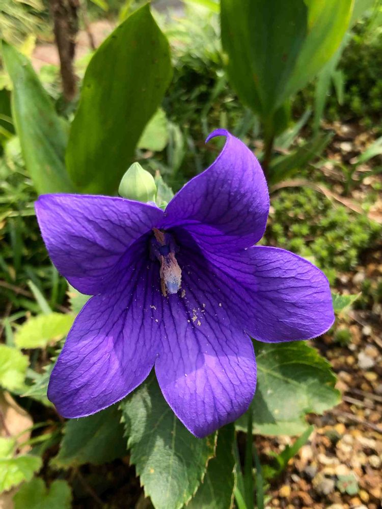 庭の桔梗の花が咲きました。紫色の花が綺麗です。