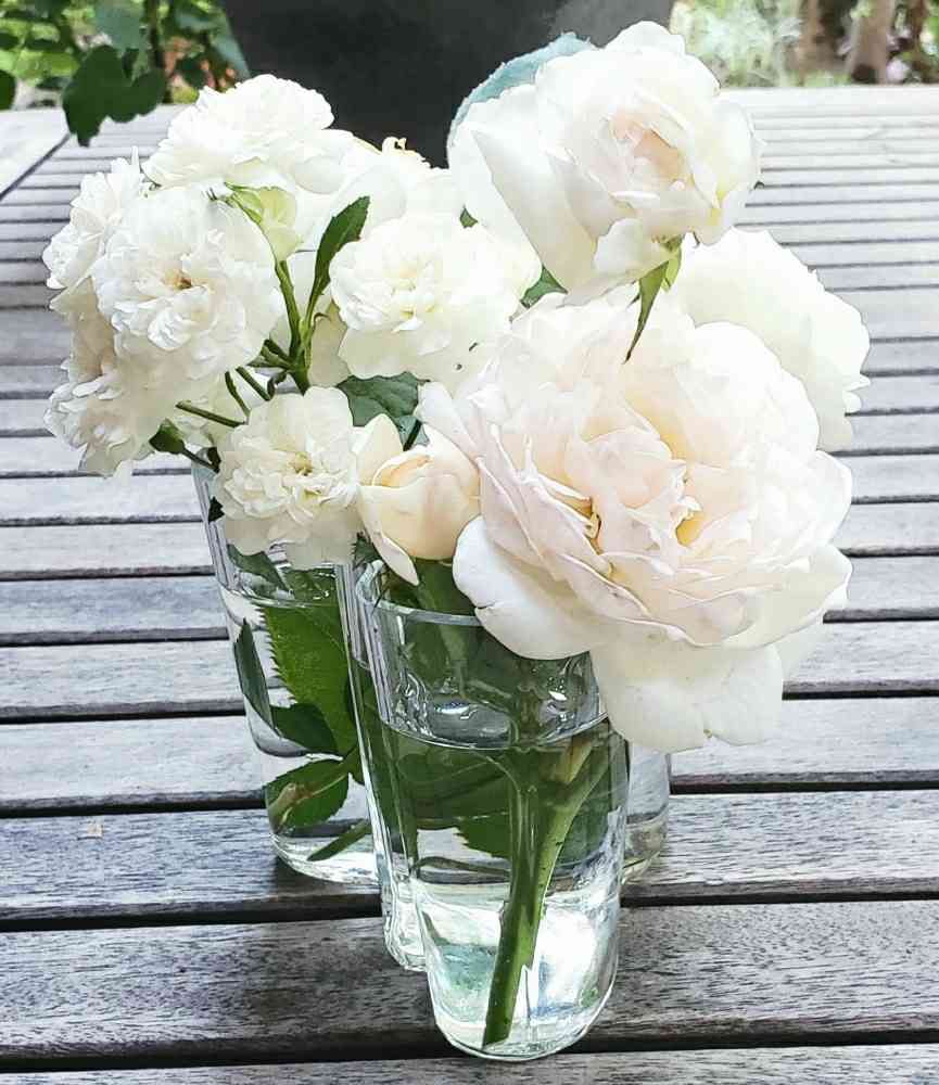 たまたまなのか、いま咲いているバラは白ばかり。ボレロとグリーンアイスとアルテミス、どれもスモールサイズです👶