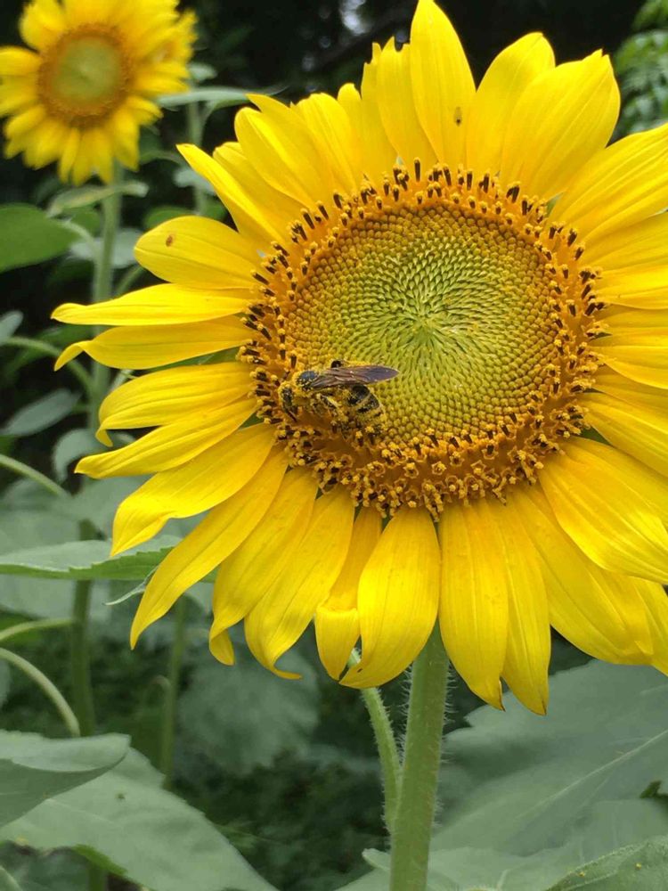 若いうちは太陽を追って花の向きが変わるので、英語でSun Flowerという名前がついたようです