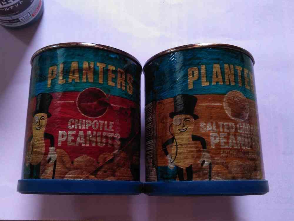 透明のニス見当たらなくてそのままだったピーナッツの缶。