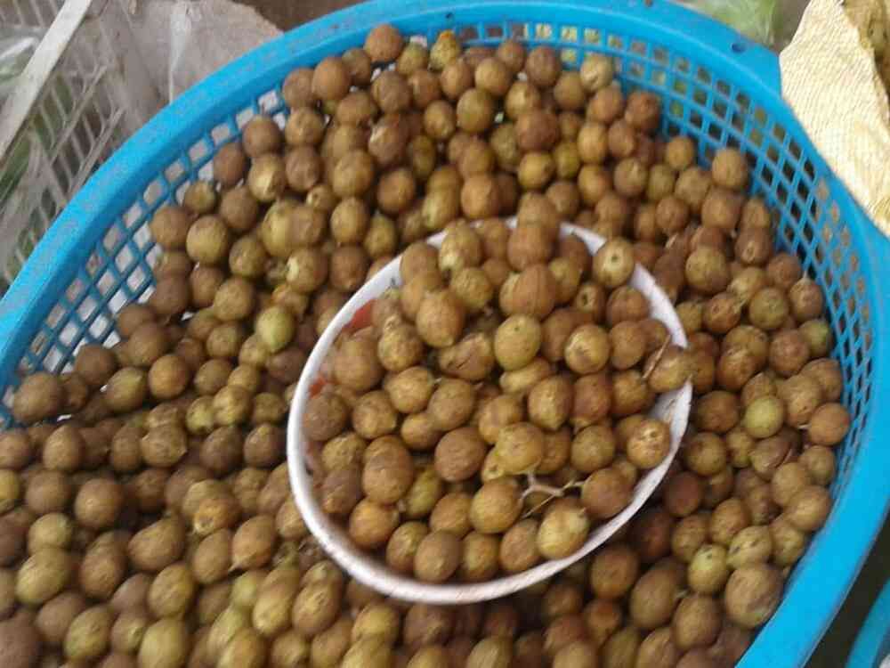画像は途中の道の駅の売店で売られていたセイロンオークの果実です。タイの野生果樹ですが、英語名にセイロン(現在のスリランカ)と付く所を見ると、東南アジアからインドの周辺国まで広く分布する物なのかも知れません。味は酸っぱく、砂糖やナンプラー等で味付けし、和え物感覚で食べる果物です。