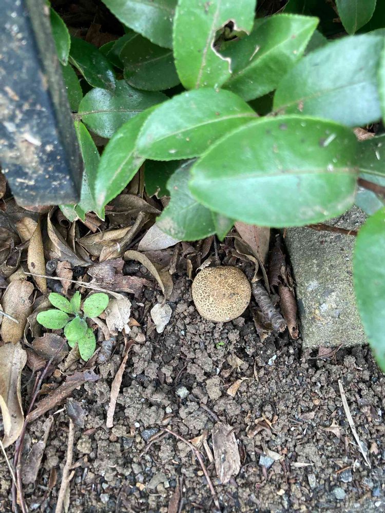 近所のキノコ:おや?こんなところに卵ボーロが落ちてる…と思ったらキノコでした。