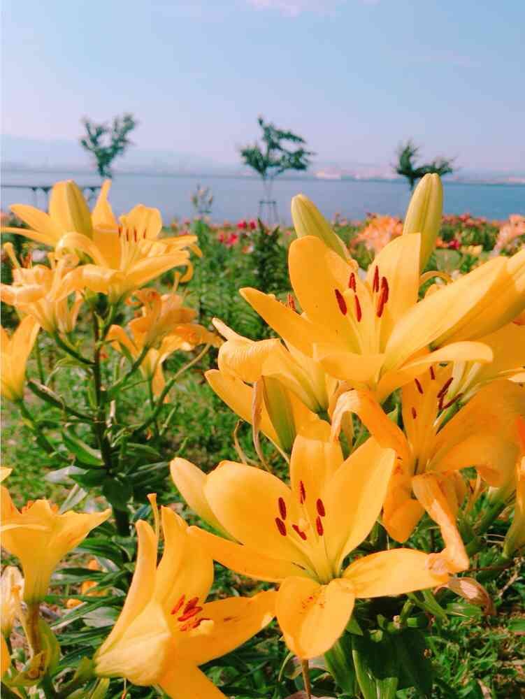 先日行ってきた舞洲のゆり園での一枚です。海と空の青とゆりの鮮やかな黄色のコントラストがすごく素敵で大阪でお気に入りの場所になりました(。◕‿◕。)