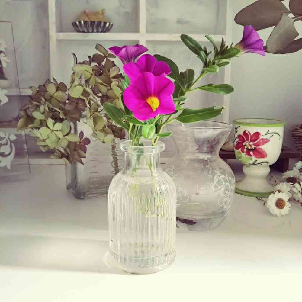 ガラスの器綺麗ですね✨✨サフィニアモリモリお花咲きますよ🌸🌸💕