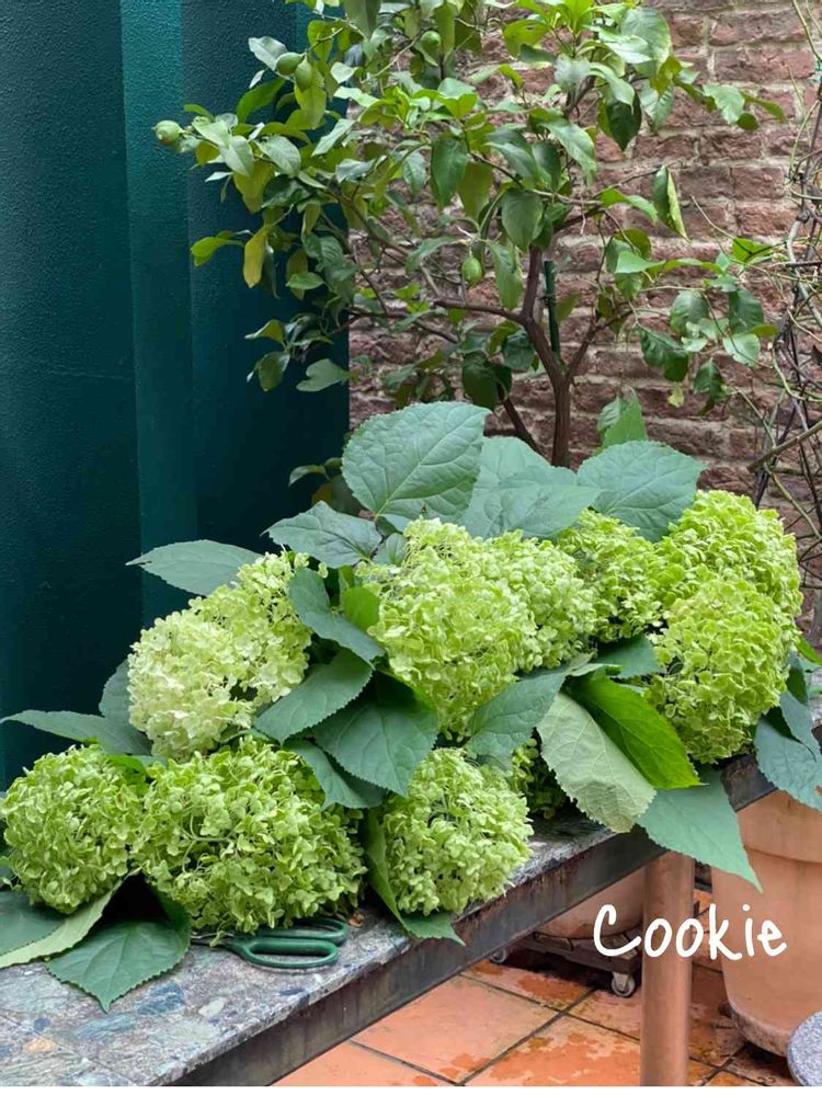 アナベル カット第二弾。明日はまた雨ばかりらしいです☂️。晴れている間にやっとカット。みどりのお花が大好き❤