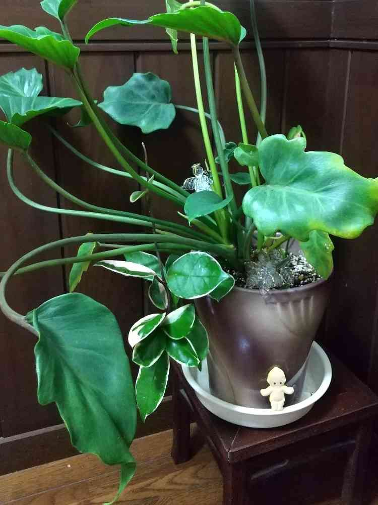クワズイモとホヤ カルノーサです。昔のクリスマス飾り掘り出しました😄見えるかしら?