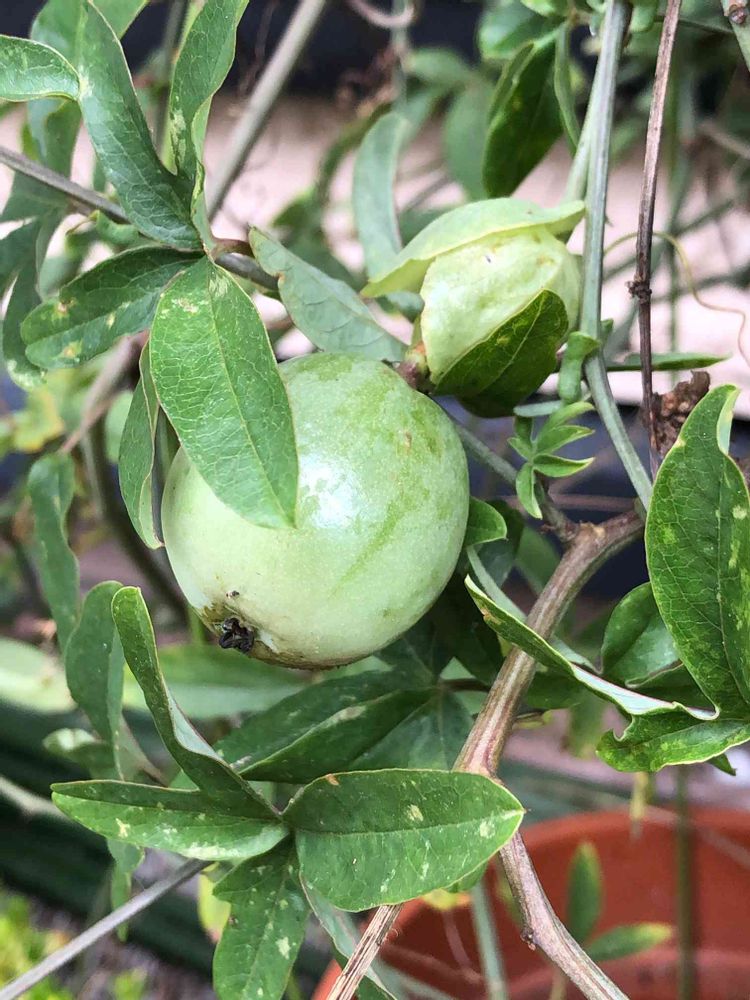 パッションフルーツ🥭になるはずですが、未だに完熟したことがありません😅